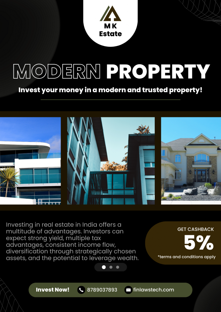 At M K Finlawstech, we guide you through one of the most reliable and time-tested investment avenues β real estate. Whether you are a first-time buyer, seasoned investor, NRI, or a corporate group, we provide end-to-end real estate investment consultancy to help you build wealth with confidence.